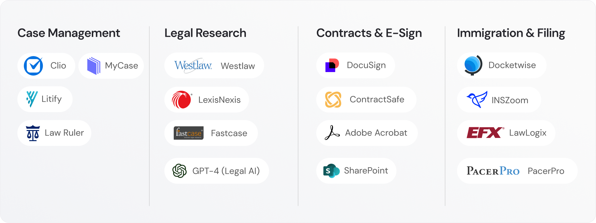 Backend execution teams supporting legal firms with documentation workflows, immigration backend support, case preparation support, contract formatting, CRM management, compliance processes, and administrative coordination.